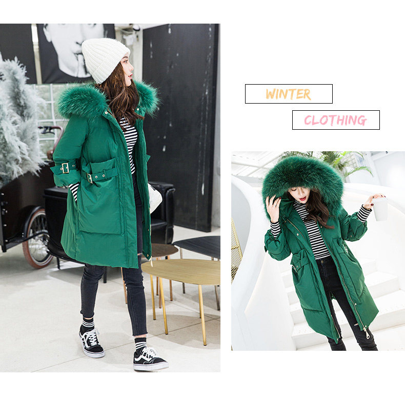 90% белые куртки на утином пуху женские зимние пальто 2018 Высокое качество Теплые плотные большой натуральный мех енота с капюшоном длинные пуховые парки