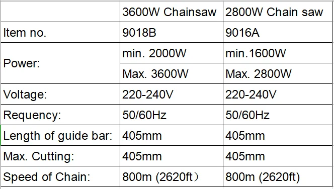 1 x цепная пила с 1x направляющей штангой + 1x цепью + 1x Рашпиль + 1x Шестигранный ключ