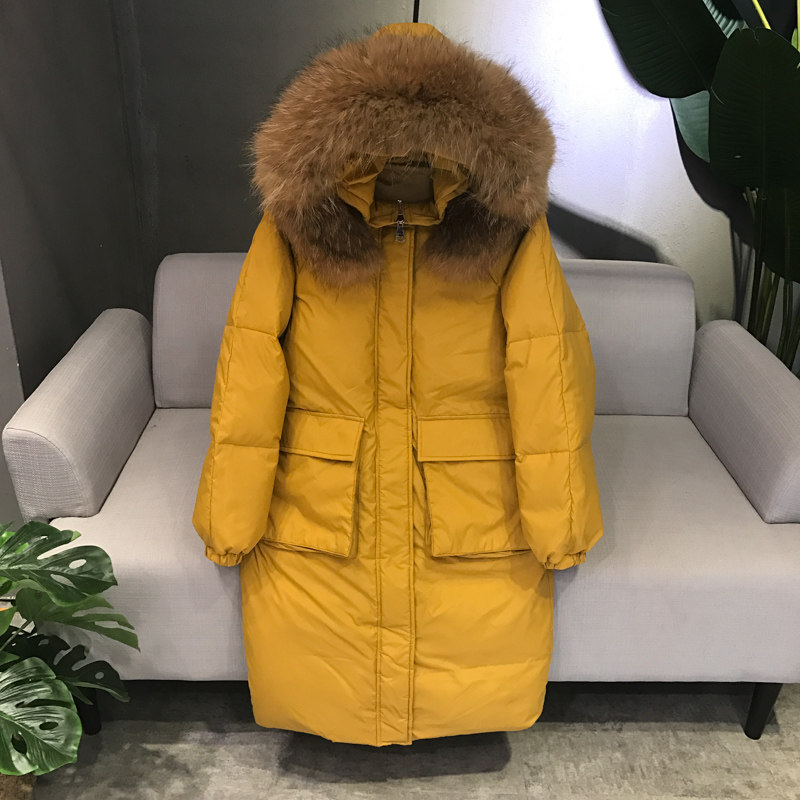Зимняя куртка для женщин 2018 90% белый утиный пух парка большой воротник из натурального меха енота куртка с капюшоном пальто женское длинное Свободное пальто