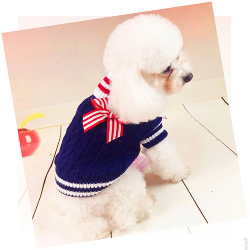 Темно-синяя одежда для собак с бантом для маленьких собак теплая дышащая Спортивная кофта Рождественский костюм для щенков Тедди бишон Фрис Чихуахуа Одежда XS-L