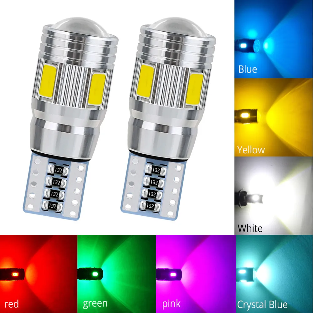 2шт Высокое качество T10 W5W внутренние ксеноновые Белый Синий Желтый светодиодный CANBUS 6SMD 5630 объектив проектор Твердые алюминиевые лампочки боковой маркер парковочный светильник