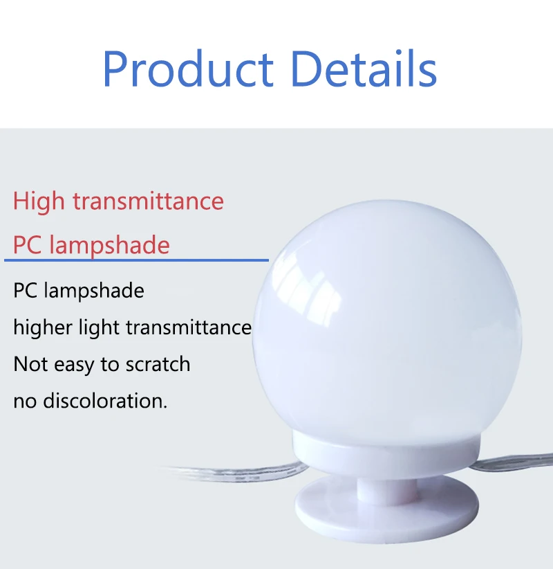 Название продукта: кнопка зеркала для макияжа Подключаемый порт: ЕС Цвет: холодный белый/натуральный белый Количество ламп: 10 ламп Количество бусин: 6 светодиодов Напряжение и ток: 12В 2А Материал: ПК Светодиодный расстояние: 40 см