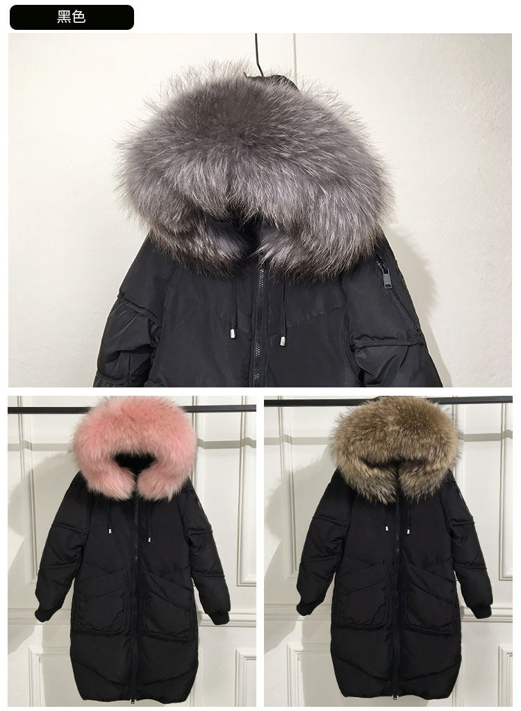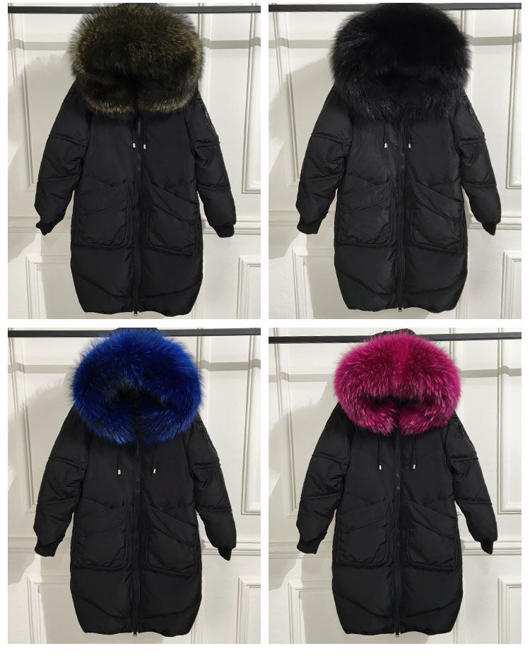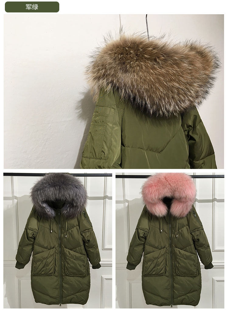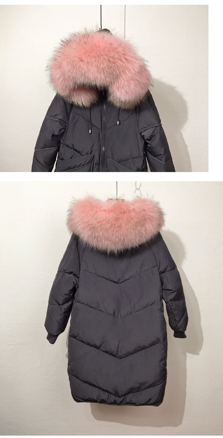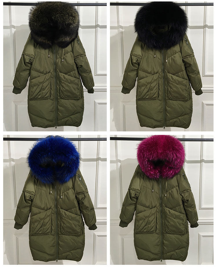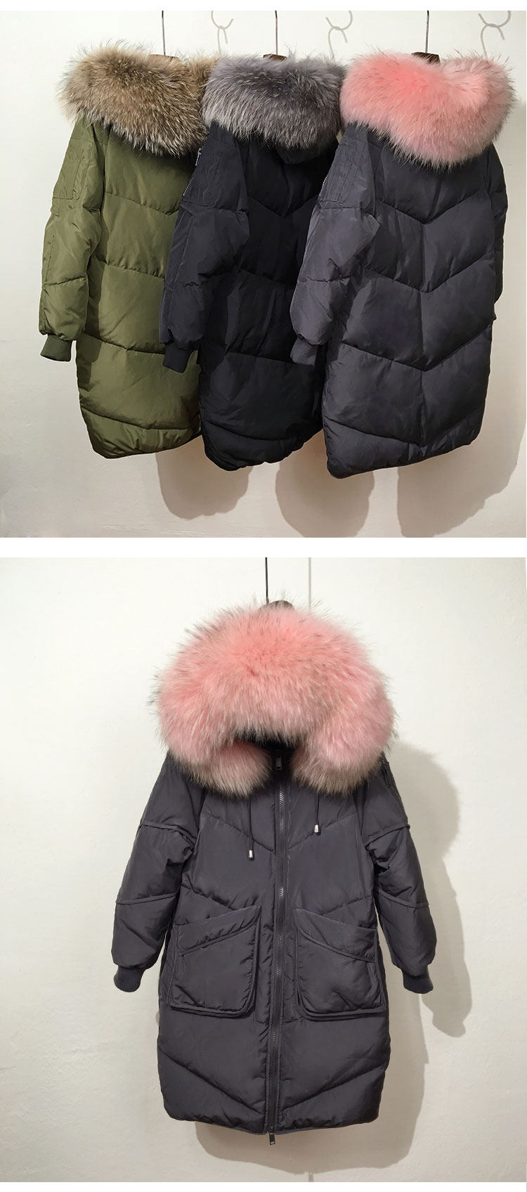 Большой натуральный мех енота 2018 зимнее пальто для женщин с капюшоном Свободный теплый женский белый пуховик на утином пуху Женская длинная куртка-пуховик