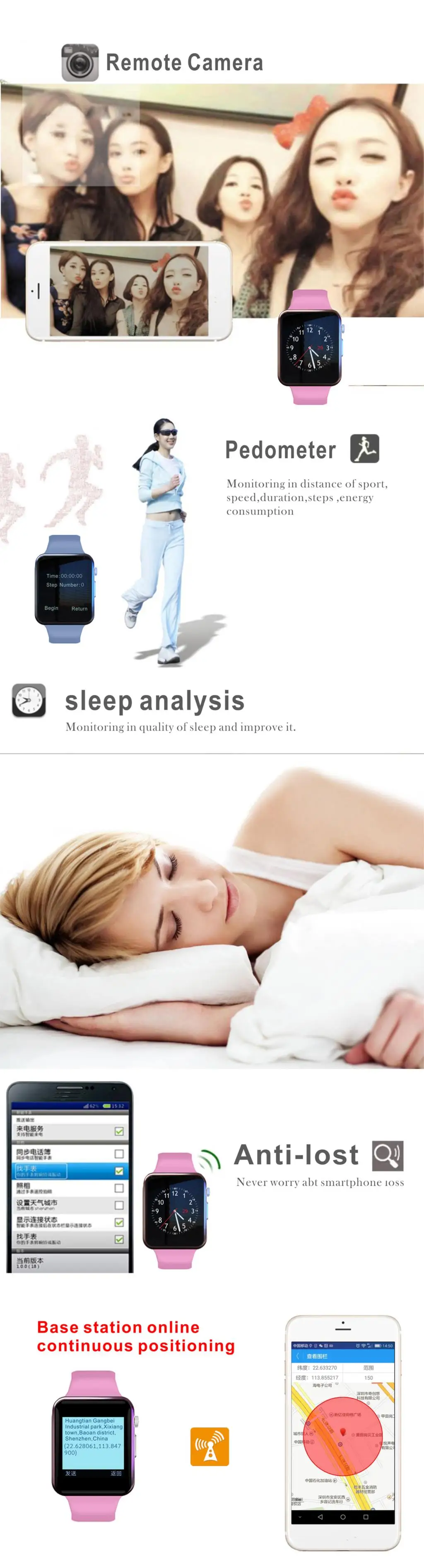 1.Нет АПК для IOS, поэтому четыре функции не могут синхронизироваться сR IOS(1. Анти-потеря, 2. Обмен сообщениями, 3. Уведомления, 4. Удаленная камера), но все другие функции могут использовать нормально, потому что нет необходимости использовать приложение.