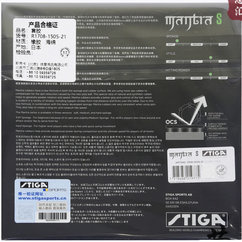 Модель изделия: STIGA MANTRA M резина для настольного тенниса с губкой