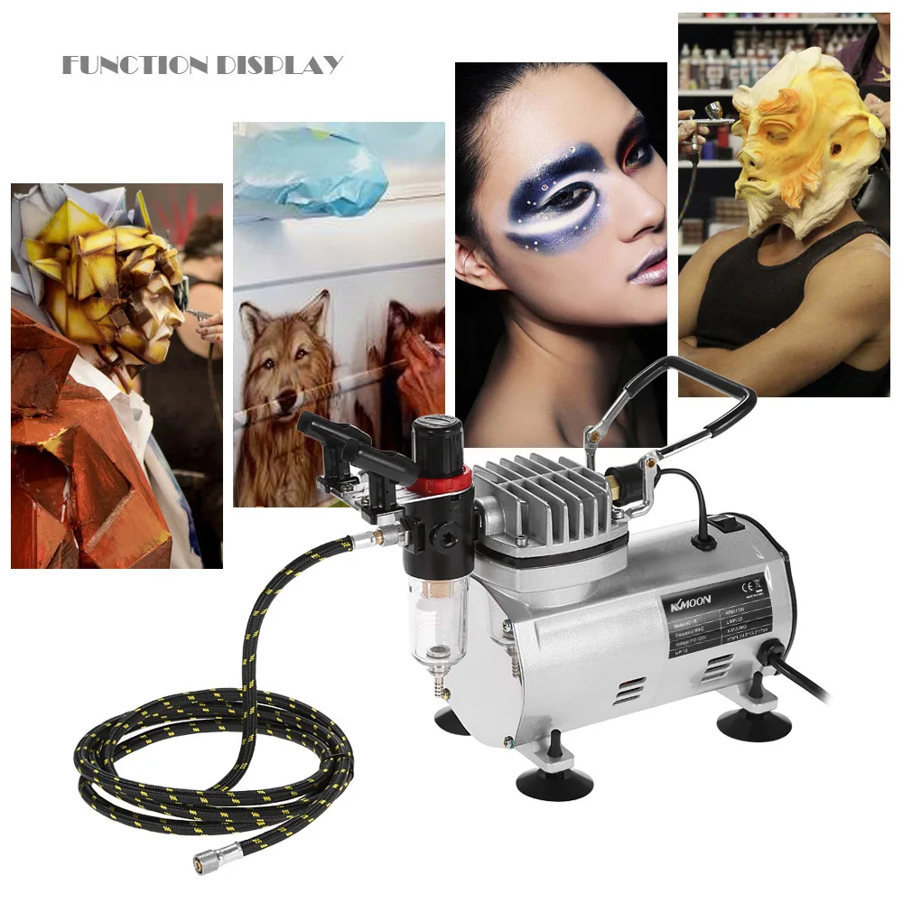 Пришел новый комплект аэрографа бренда KKmoon с комплектом из 3 аэрографов и высокоэффективным воздушным компрессором! Идеально подходит для распылительной живописи, а также для ногтей и временных татуировок, украшения тортов, крафтовой живописи, хобби, коммерческого искусства, иллюстраций, ретуширования фотографий и других аэрографий. Этот высокопроизводительный Компрессор предназначен для пользователей, которым нужен высококачественный эффект распыления. Используйте этот комплект воздушного насоса для компрессора аэрографа, вы можете получить от новичка, чтобы стать продвинутым художником. Так что не сомневайтесь, просто возьмите его домой!
