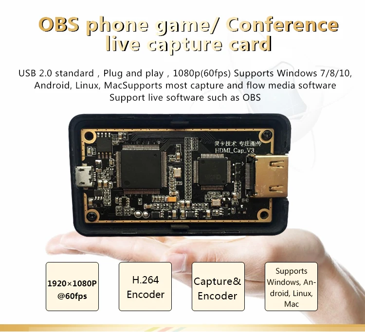 LCC260 передает видеосигнал HD HDMI к MJPEG и H.264 с помощью внутреннего высокоэффективного жесткого кодировщика и передает его на хост через USB. Поскольку LCC260 интегрирует внутренний аппаратный кодировщик, хост может получать аудио и видео потоки высокой четкости по гораздо более низкой цене. После декодирования аудио-видео выход AV по-прежнему отличный, но поток данных значительно меньше, что очень подходит для передачи и хранения сети.
