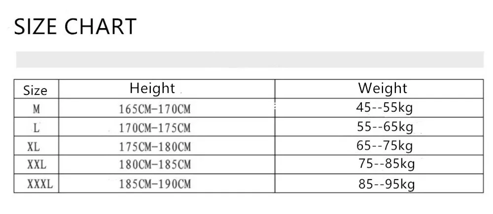 Уважаемые покупатели, обратите внимание: Наша Таблица размеров основана на Азиатском размере, как правило, Азиатский размер L = Европейский Размер M = американский размер S Пожалуйста, выбирайте размер исходя из веса и роста, исходя из нашей таблицы размеров, это правильно.
