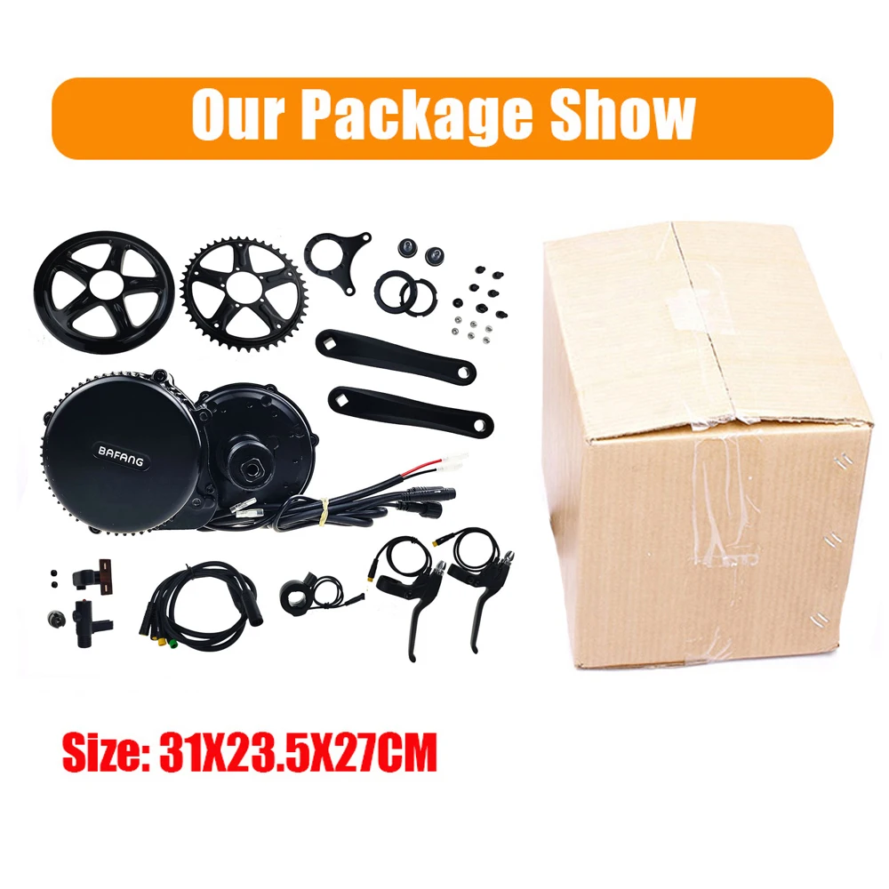 2. Батарея и мотор будут отправлены отдельно, и Вы получите 2 посылки, мы дадим вам 2 номера отслеживания тоже!3. В зависимости от страны и региона, батарея посылки будет задержать 7-15 дней, чтобы прибыть.# Советы:* Наш мотор в основном использует транспорт DHL, и некоторые страны используют транспорт DPD; Основной транспорт батареи UPS.* Если ваш регион находится в удаленном районе, мы будем взимать с вас определённую сумму сборов за удаленное обслуживание.* Если ваш адрес находится на остров, пожалуйста, свяжитесь с нами перед заказом, чтобы мы могли проверить, можем ли мы организовать доставку к вам.# Решения:* Вы можете оплатить почтовые расходы бесплатно, но сумма относительно большая, это дороже.* Есть ли у вас родные или друзья, живущие в дальнем городе? (Мы можем отправить его ему бесплатно, а затем попросить его отправить товар к вам. Это будет хороший выбор)Особенности:Это обновленный комплект конверсионного двигателя bafang, он включает датчик передач, он может помочь вам безопасно управлять велосипедом. Для ночного вождения в комплект также входит светодиодная фара 6 в. Инструмент BBS-это хороший инструмент для установки двигателя Bafang. Все они-полезные аксессуары.Введение:С интегрированным датчиком скорости этот двигатель среднего привода, совместимый с 68 нижним кронштейном, имеет номинальную мощность 750 Вт, коэффициент уменьшения 1: 21,9 и максимальный крутящий момент 160 Н. М, обеспечит всадника большой взрывной силой при запуске системы. Высокопрочный и эффективный, этот мотор значительно увеличивает радость езды и подходит для горных велосипедов и песочных велосипедов, которые являются любимыми гонщиками, которые любят проблемы, а также транспортные велосипеды.