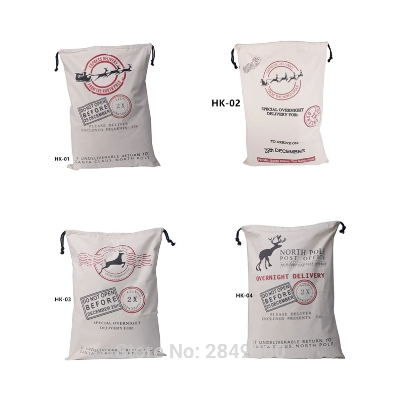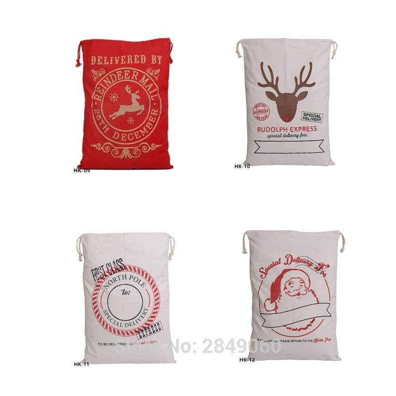 20 шт./лот 32 стиля холст мешок Санта-Клауса Рождественский подарок сумки для оптовой продажи большой мешок Санта-Клауса Drawstring мешок подарка Санта Быстрая доставка