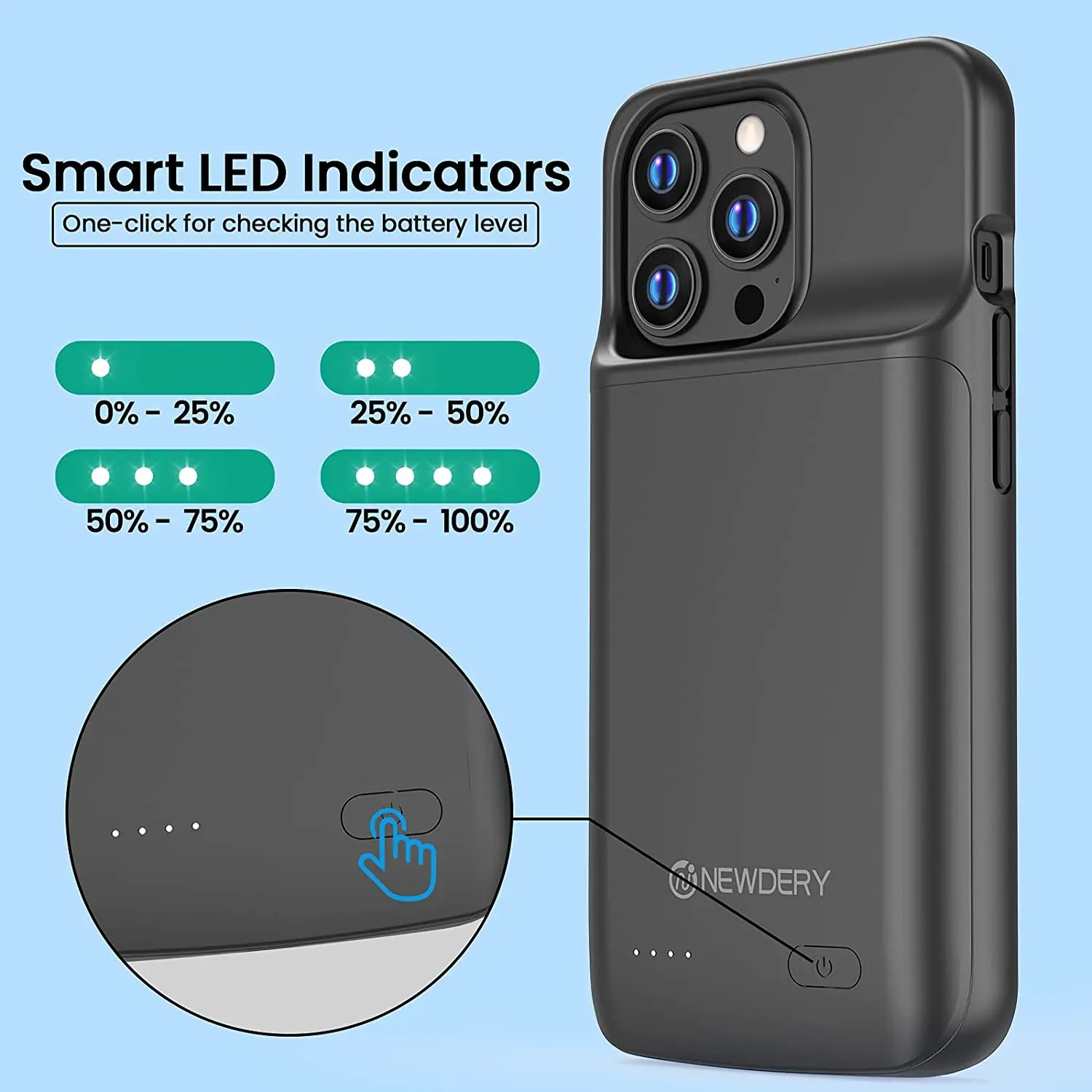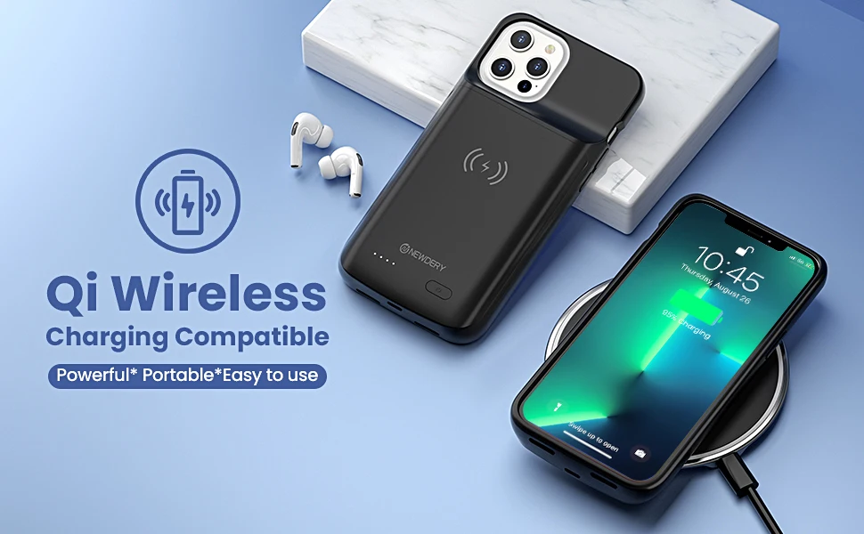 NEWDERY чехол для батареи для iPhone 13 Pro Max, 4800mAh Qi беспроводной Расширенный чехол для зарядки, тонкий портативный защитный чехол для зарядного устройства для iPhone 13 Pro Max-6.7inch