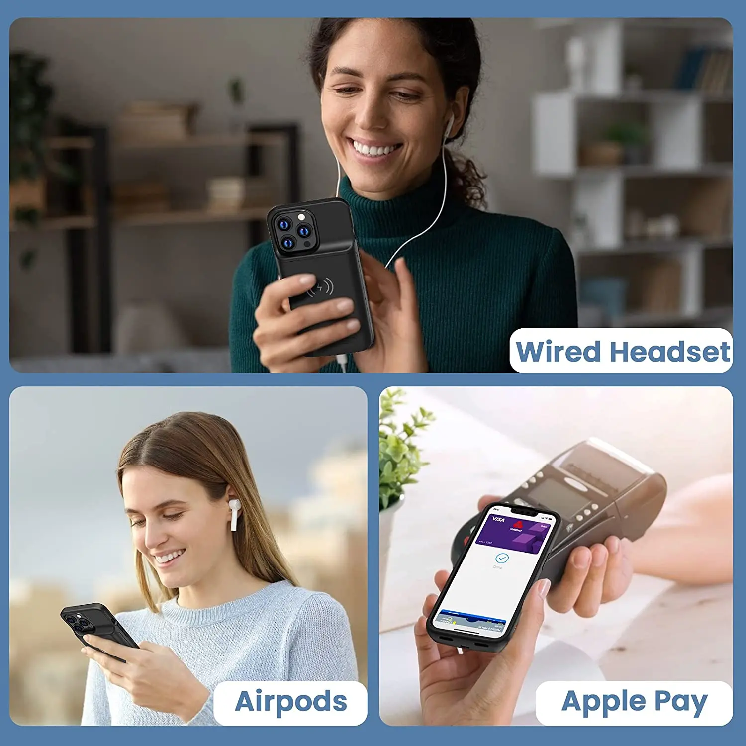 [Поддерживаются проводные наушники и Apple Pay] вы можете использовать музыку с оригинальными проводными наушниками или bluetooth-наушниками во время зарядки телефона через чехол. И вы можете наслаждаться удобством Apple pay, не снимая чехол от аккумулятора. Сделайте вашу жизнь более веселой и удобной.