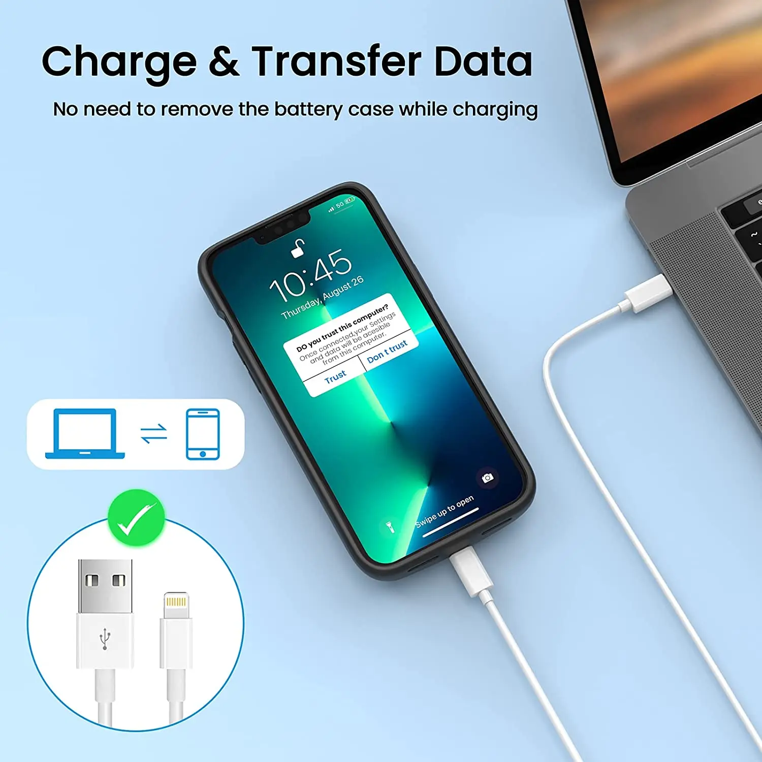 Чехол для зарядки iPhone 13 Pro Max поддерживает синхронизацию данных. Вам понравится забавная и Удобная передача данных, и вам не нужно снимать чехол.