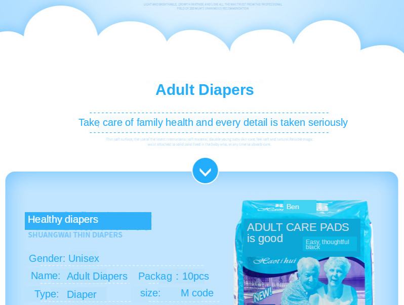 Тип товара: подгузники для взрослых с хорошим корпусом и 10 шт.