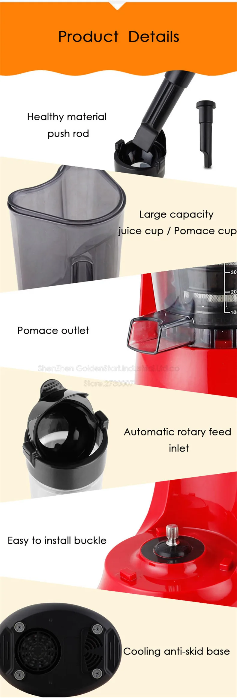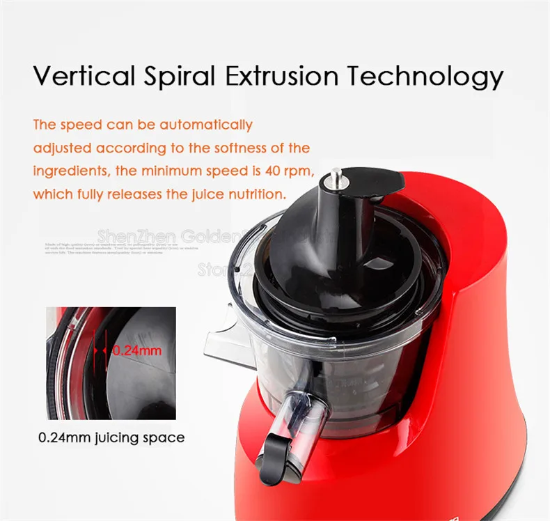 2. Скорость может автоматически регулироваться в соответствии с твердостью и мягкостью пищи. Минимальная скорость 40 об/мин, которая полностью выделяет питательные вещества в фруктах и овощах и не легко окисляется.