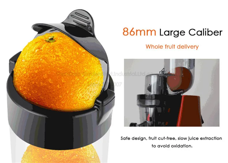 1,86 мм большой калибр, фрукты могут быть помещены полностью, без резки.