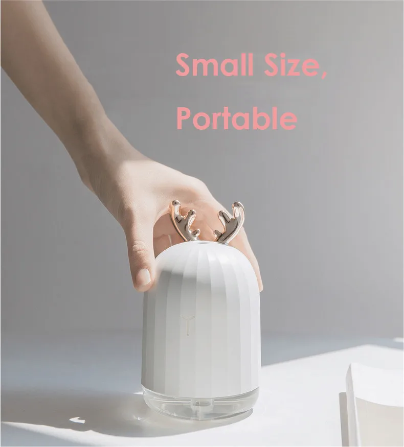 Наименование: милый олень увлажнитель Материал: АБС-пластик + полипропиленовый бачок для воды: 220 мл Размеры: 80*80*139 мм Цвет: белый, розовый, Мощность: 1,5-2 Вт Напряжение: DC5V ватный тампон Размеры: 8 мм (диаметр) * 97 мм (длина)