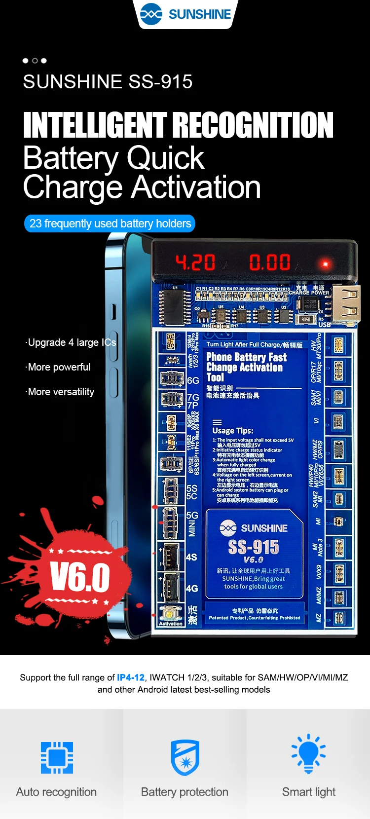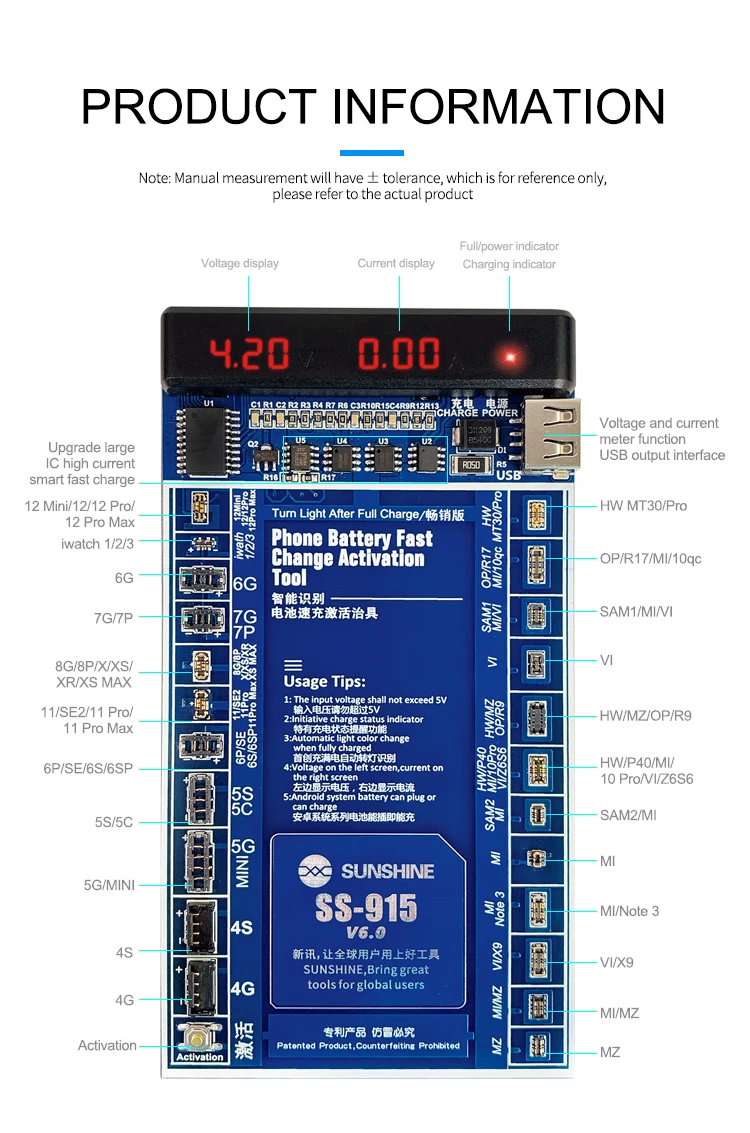 SS-915 V6.0 плата активации батареи для Android мобильный телефон для iPhone 12 SAM серии HUAWEI OPPO LENOVO зарядный USB кабель