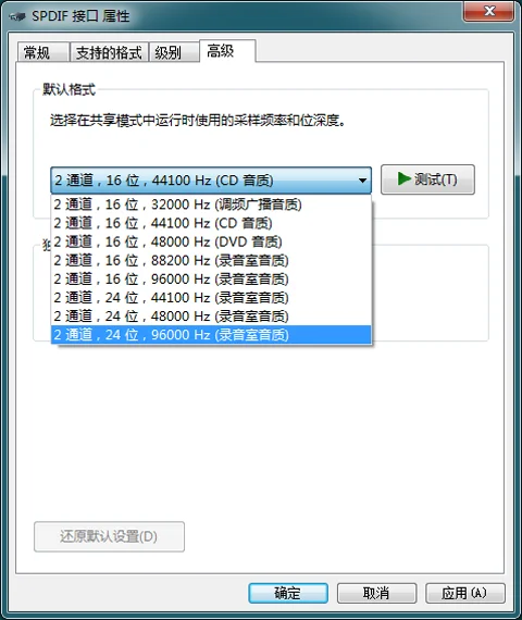 Частота дискретизации: 16 бит 44,1 k, 48k, 96k, 192k; 24 бит 44,1 k, 48k, 96k