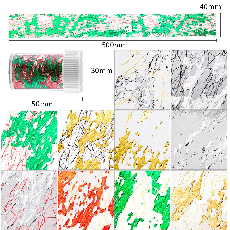 12 коробок Золотой Серебряный медный лак для ногтей блестящая Фольга блестка Чип наклейки Советы Дизайн украшения маникюрный набор инструментов