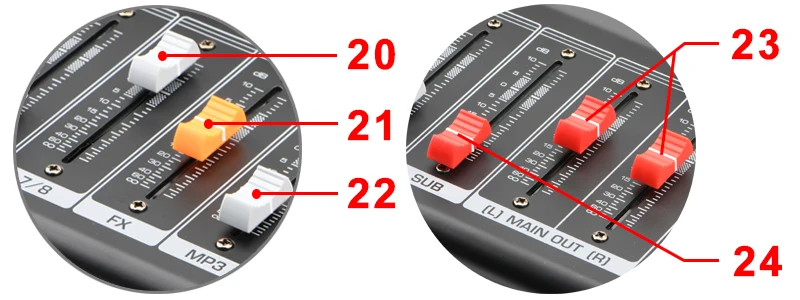 Используйте высококачественные фейдеры для контроля выходного уровня основной смеси.