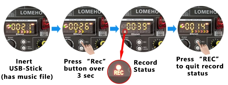 Запись: во время воспроизведения музыки, длительное нажатие для записи, короткое нажатие для завершения записи и ввода воспроизведения музыки записи.