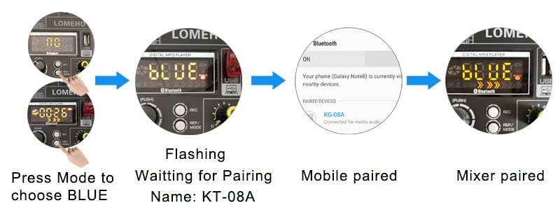 3. Используйте bluetooth-оборудование для сопряжения -- имя: KT-08A