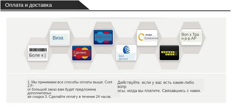 4. Мы осуществляем отправку через DHL, UPS, EMS и другие экспресс-службы, если Вам нужно изменить способ доставки, пожалуйста, свяжитесь со мной.