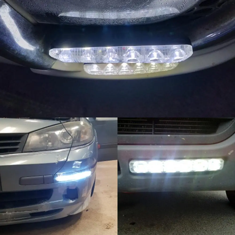 2X авто DRL лампа для автомобиля, дневной ходовой светильник, 6 светодиодов, белый корпус IP67, водонепроницаемая сигнальная фара для вождения, лампа для парковки, противотуманный светильник, бар, DC 12 ВОсобенности:Модель: дневные ходовые огни Источник питания 12 (Вт)
