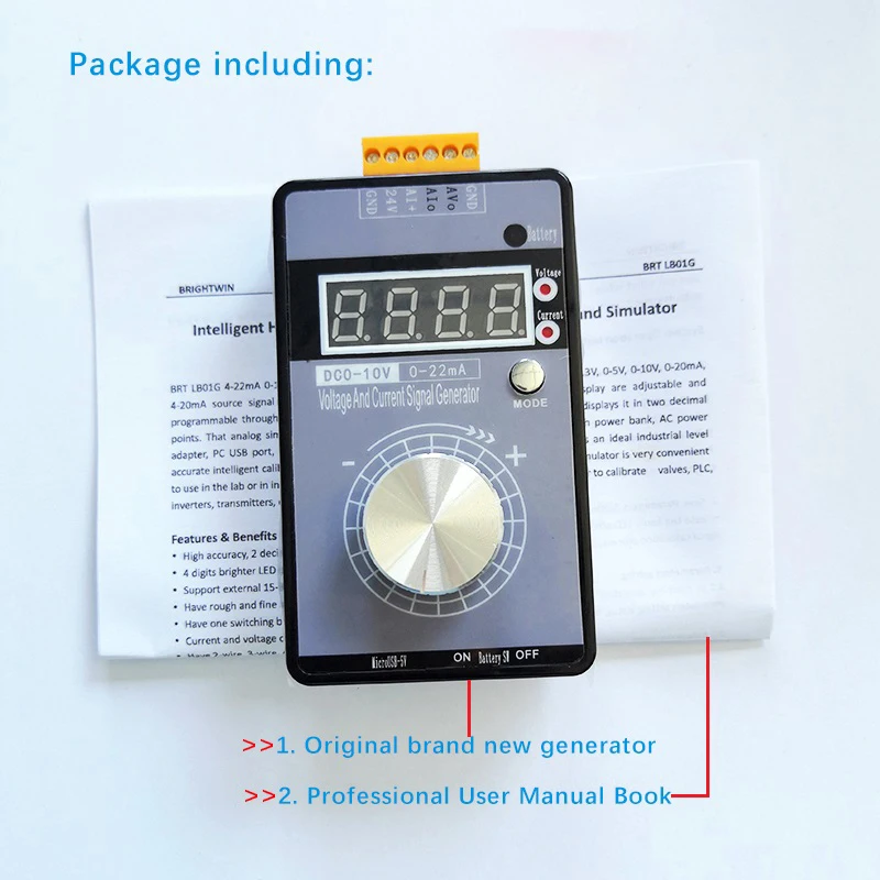 Портативный 0-5 в 0-10 В 4-20mASignal генератор посылка в том числе: 1 единица x оригинальный JS-VISG-M-SГенератор сигналов 1 Набор x профессиональное простое в использовании Руководство пользователя ***Пользователи могут добавить li-ion 3,7 в перезаряжаемый аккумулятор сами по себе есть батарея источника питания схемы предустановленных для профессиональных разработчиков, которые Нравится делать дополнительные DIY. Примечание: только профессиональный разработчик рекомендуется сделать это DIY***.