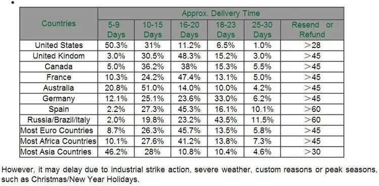 2). Сроки доставки:Время доставки зависит от различных способов доставки.