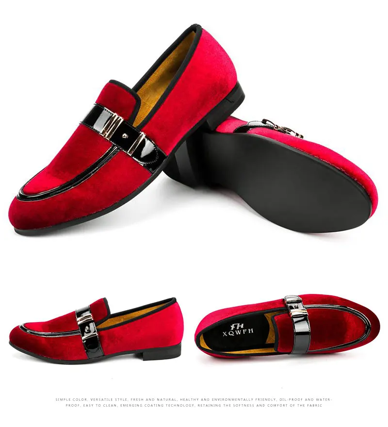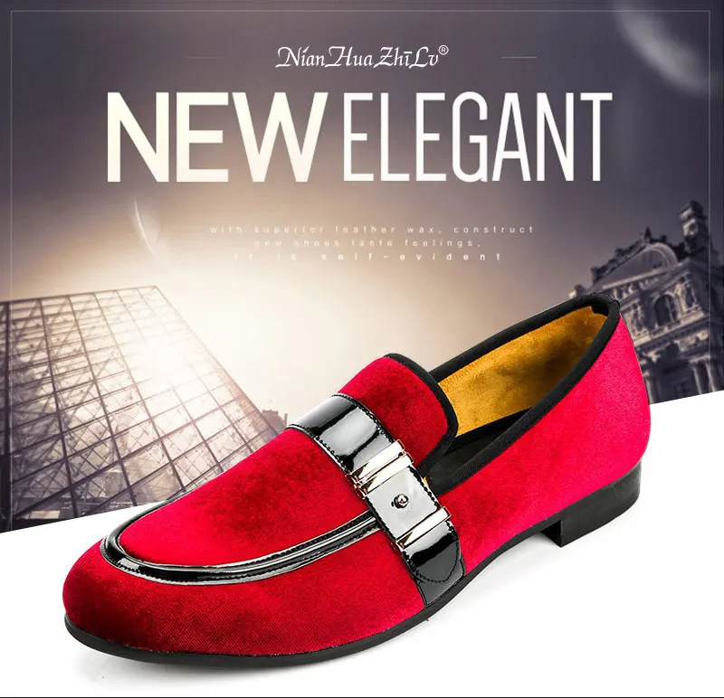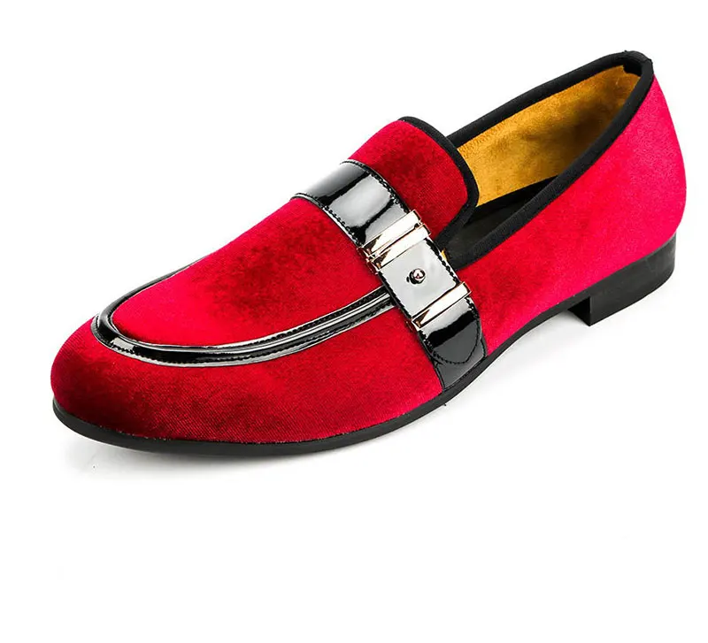 New Fashion Men Velvet Dress Shoes Men's Party and Wedding Handmade Loafers Gold Buckle Men' Flats