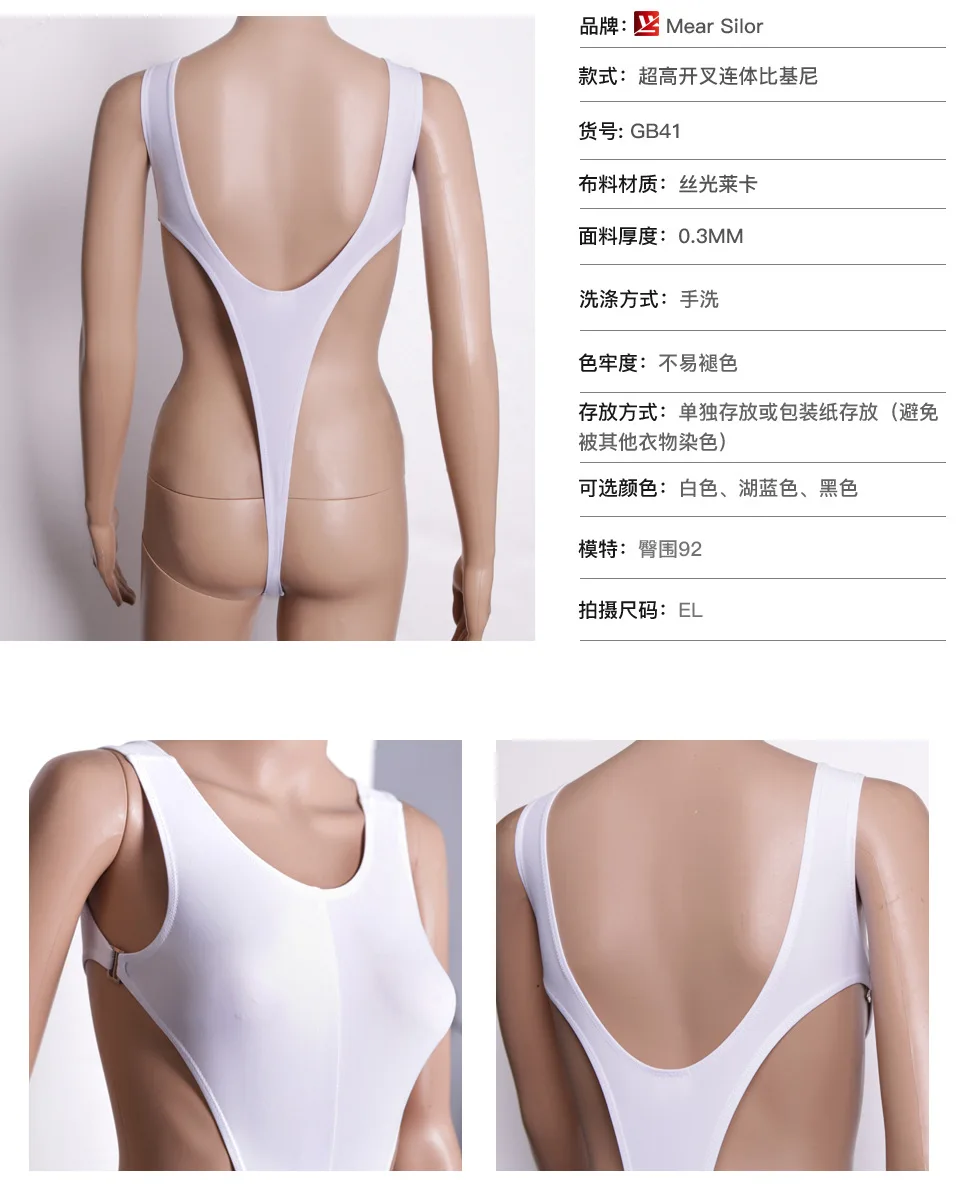 Блестящий лайкра, бикини, Белый боди, женский, мокрый, с высоким вырезом, сексуальный, черный, боди, стринги, купальник, один предмет, sukummizu Combinasion