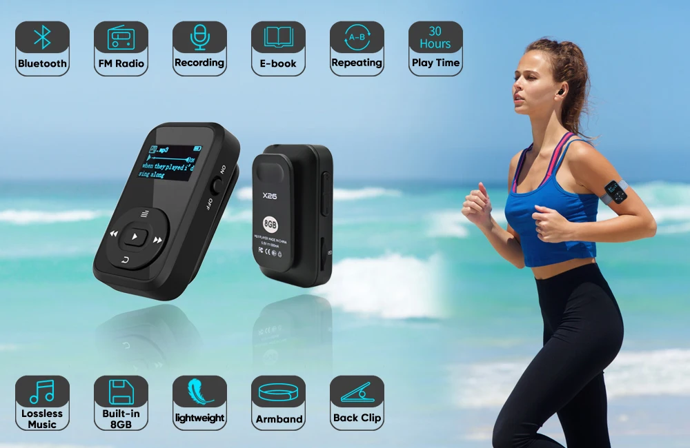 BluetoothДля съемки в движении Sports Mini MP3 плеер