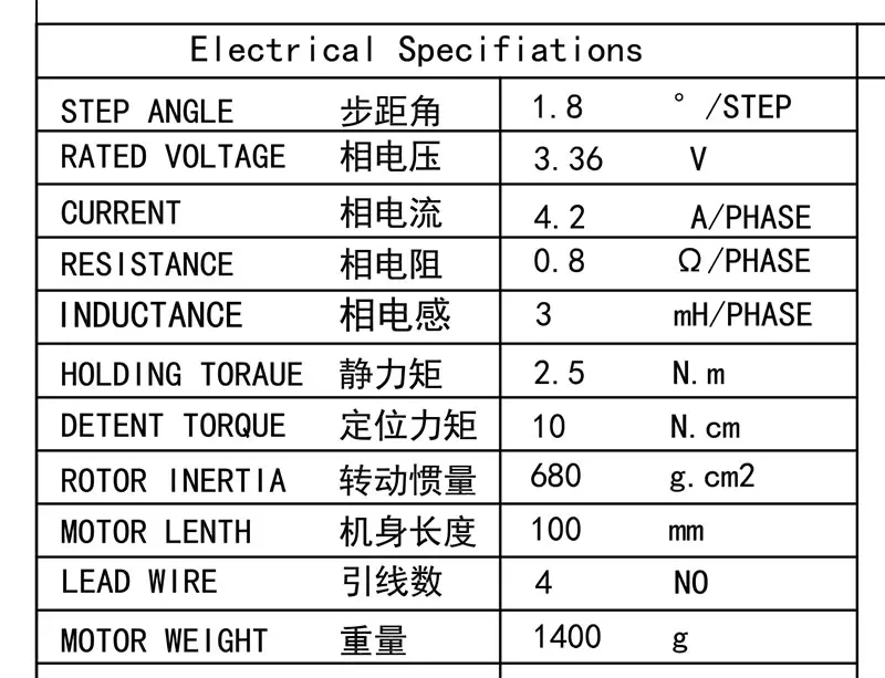 Nema 23 шаговый двигатель с двойным валом 2.5N.m удерживающий крутящий момент 4.2A ток 100 мм Длина корпуса двигателя