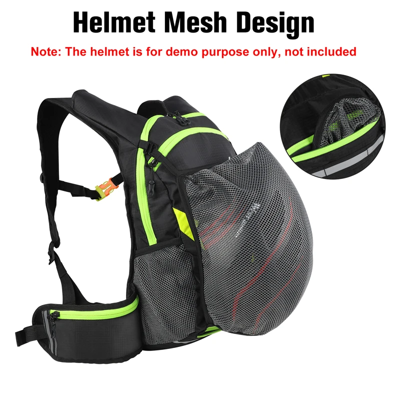 Спецификация: Материал: нейлон Цвет: черно-серый/черно-зеленый/черно-оранжевый/черно-желтый (дополнительно) Емкость: около 10 л Вес: около 280 г Размер: 40*26*9 см Сцены: Велоспорт, альпинизм, путешествия, туризм и т. д. Особенности: 1. Водоотталкивающая и устойчивая к разрыву нейлоновая ткань. 2. Высококачественные молнии, легко застегиваются на молнию и расстегиваются. 3. Дышащая мягкая задняя панель, регулируемый ремень грудины и плечевой ремень. 4. Боковые и передние регулируемые ремни для подвешивания всего необходимого. 5. Поясная сумка для сотового телефона, ключей, мелких аксессуаров.
