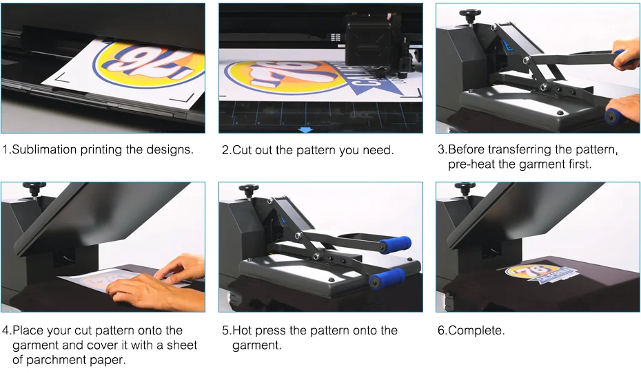 6. С пьезоэлектрической печатной головкой и оборудованием для передачи тепла и термопереводной бумагой, вы можете переносить индивидуальный дизайн в упаковку, кружки фарфора, плитки, палатки, флаги, футболки, все виды рекламных подарков и художественных работ.