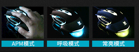 Rapoo V302 поддерживает настройку подсветки 16,8 миллионов цветов, в общей сложности шесть режимов подсветки: спектральный цикл, режим симфонии, режим цикла APM, режим дыхания, яркий режим, выключите свет. Режим цвета и освещения может быть изменен путем вождения, и три независимых света, есть два вида отображения цвета и цвета, можно настроить три цвета s.