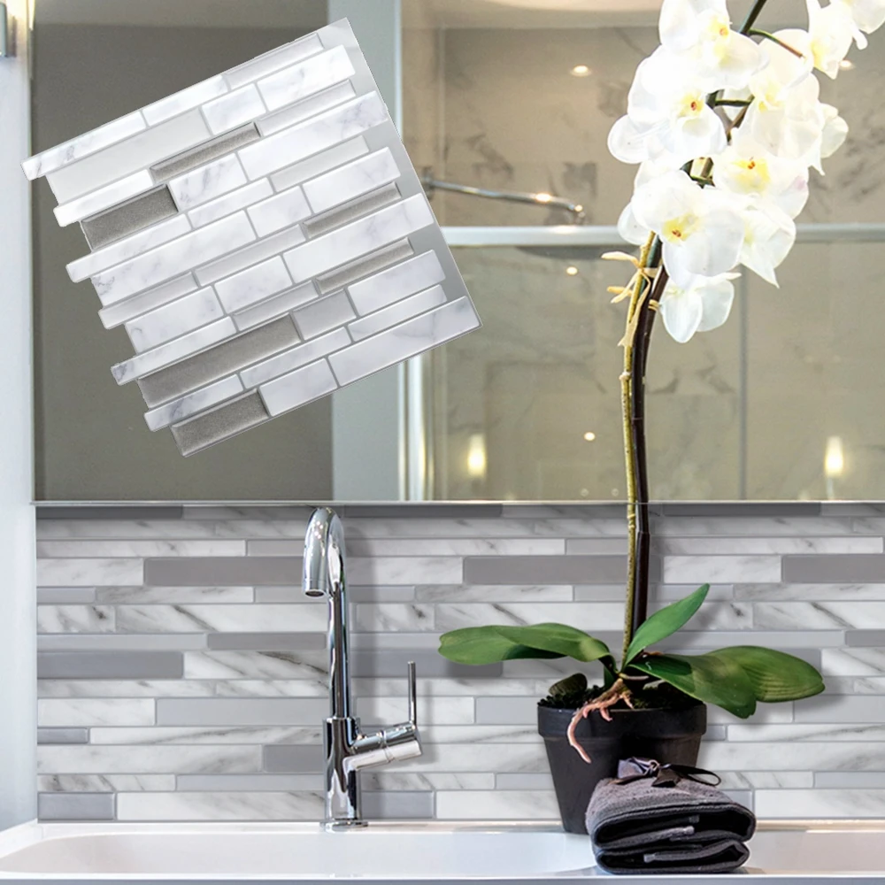 Кожуры и наклейки могут работать на всех гладких, чистых и сухих поверхностях, таких как окрашенный гипсокартон или даже прямо поверх керамической плитки. Просто очистите и приклейте, Легко установите. Все, что вам нужно-линейка, карандаш, тряпочка и ножницы. Этот проект позволит вам сэкономить время и деньги по сравнению с реальной плитой. Не беспокойтесь, что плитка не подходит под размер вашей стены, так как ее легко разрезать.