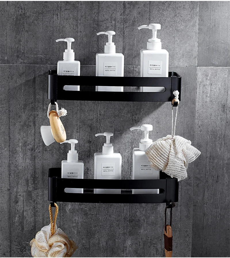 Космическая алюминиевая прямоугольная и треугольная стойка для хранения дома, ванной, шампуня, гель для душа, органайзер, без дырочек, кухня, одна полка