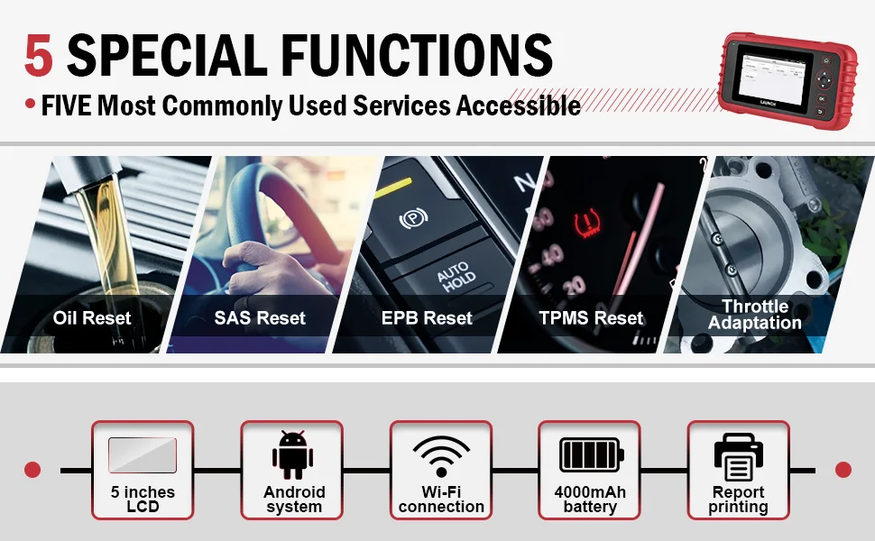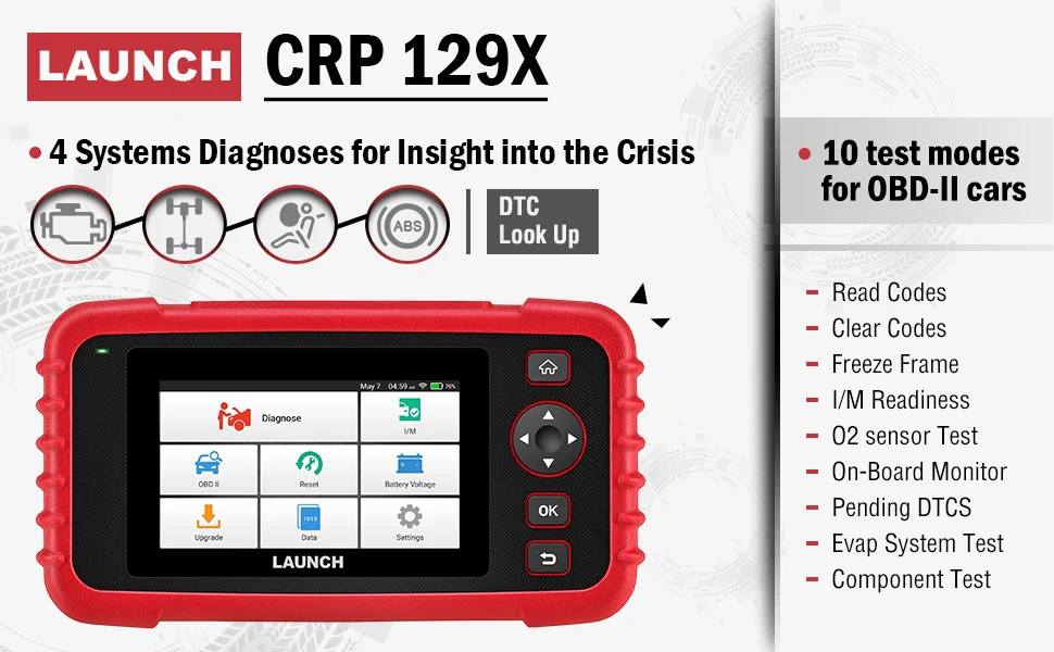 Инструмент диагностического сканирования LAUNCH OBD2 CRP129X был сделан для эффективной работы с 5 наиболее часто используемыми услугами, которые доступны для полной диагностики и обслуживания: