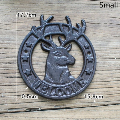 Круглая голова оленя чугунная приветственная табличка для фермерского дома, акценты, античный деревенский домашний сад, Настенный декор, круглые тяжелые металлические знаки