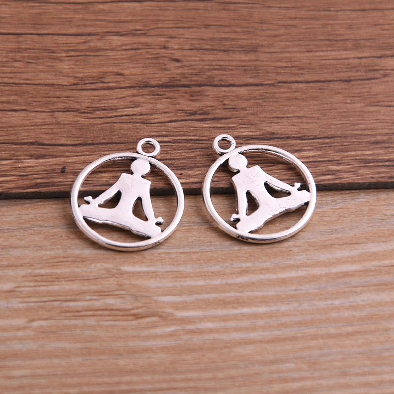 PULCHRITUDE 20PCS 20*23mm Sport Charms Yoga Pendant Two Color DIY Retro Jewelry Bracelet Necklace Charms Pendant P6524