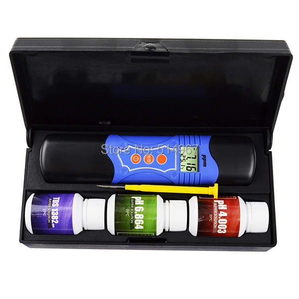 Полный комплект поставляется с 2 pH и TDS калибровочным раствором