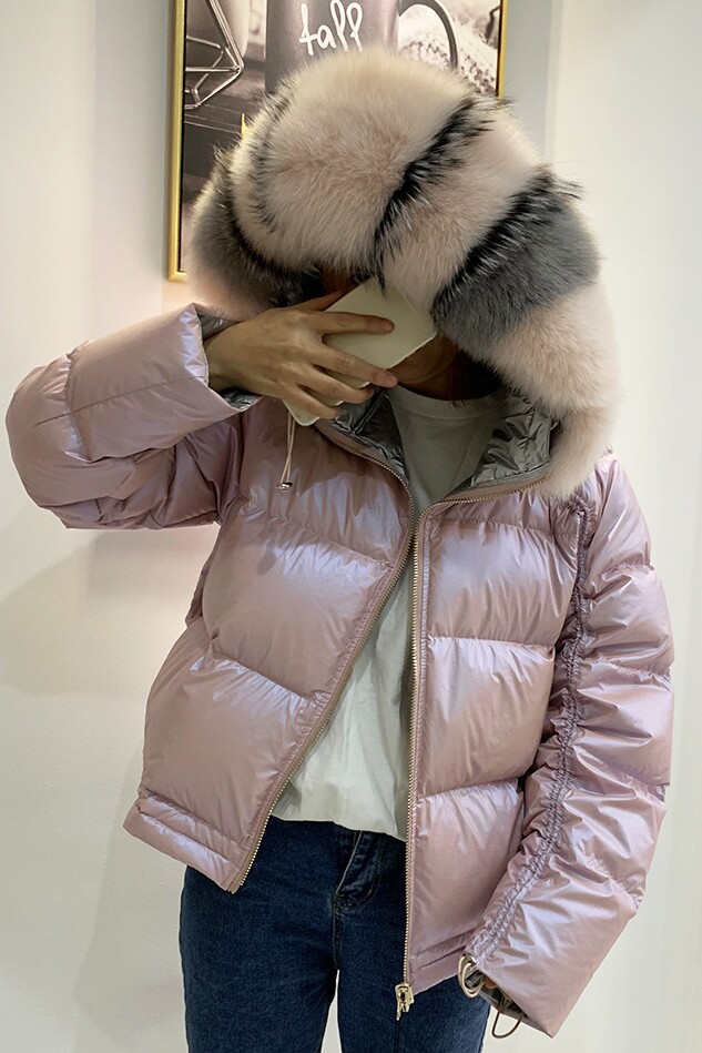 Материал:Натуральный меховой воротник+Белый пуховик на утином пуху Iinner