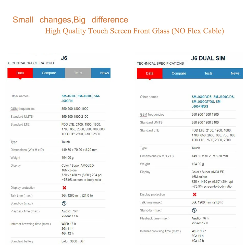 10 шт./лот для Samsung Galaxy J6 2018 J600 J600F SM-J600F/DS SM-J600G/DS сенсорный экран панель внешнее стекло объектив ЖК-дисплей передняя с OCA Запасные Запчасти