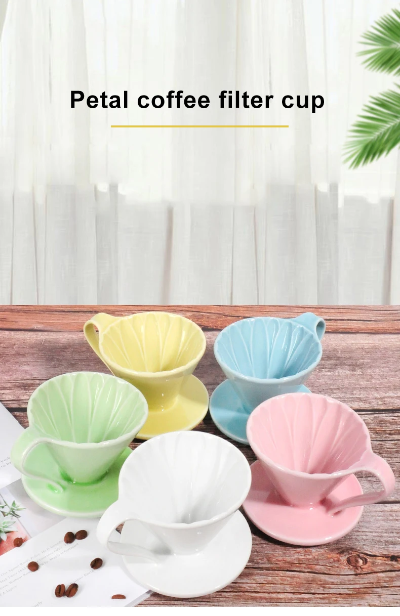 Капельница с лепестками, керамическая чашка, Кофеварка V60, капельная кофейная капельница, розовая/зеленая/желтая эспрессо, фильтры, аксессуары для кофе