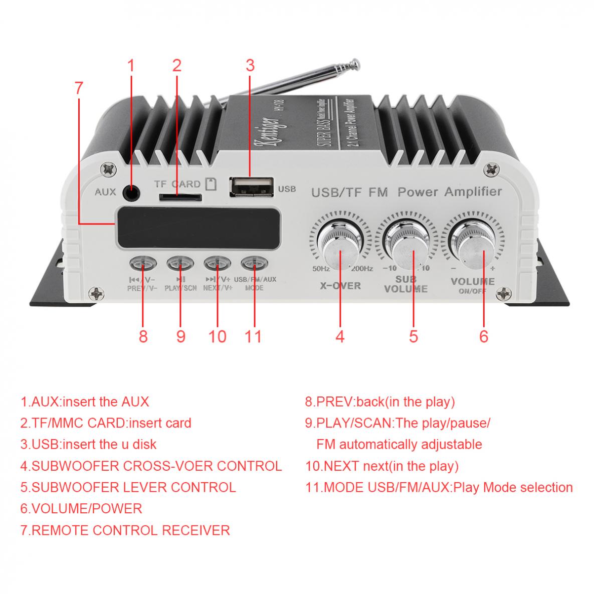 -Может воспроизводить u-диск SD / MMC для музыки и fm-стерео радио, поддерживает формат MP3 музыки.