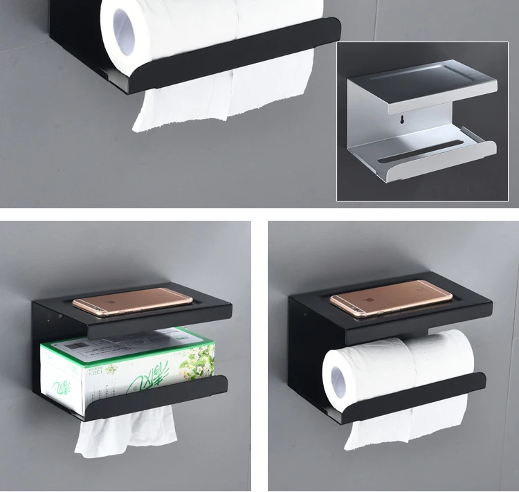 Roll Paper Holder Home Bathroom Punch Free Tissue Box Hotel WC Space Aluminum Paper Storage Shelf Kitchen Napkin Paper Dispenser