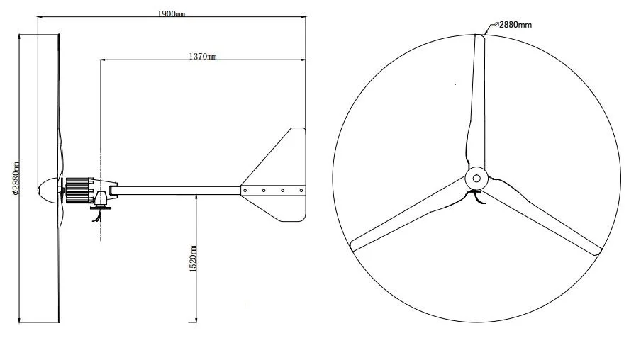 Pacakages includes: 1pc Generator;1pc Hub;1pc Dome;1pc Tail Rod;1pc Tail Board;3pcs Blades;Screws and nuts